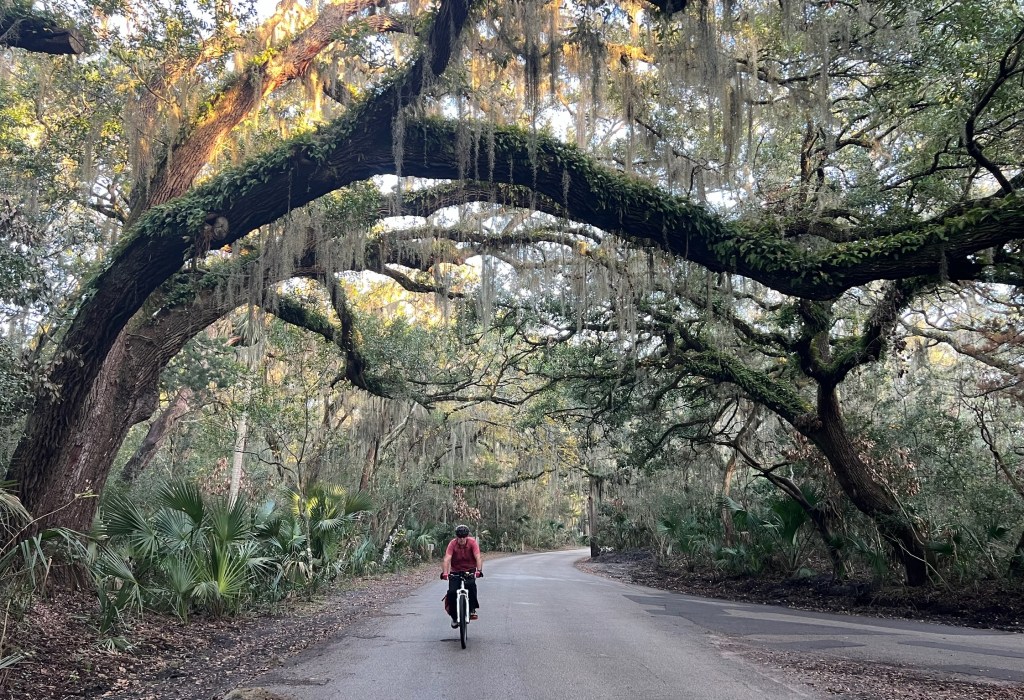 We entered our 14th state, pleased to be getting to warmer weather! We were also pleased that we were still in a landscape of live oak trees and Spanish moss. The campground at the National Park of Fort Clinch was a veritable forest of these trees along with palm trees. We had a nice explore around the fort, which wasn’t well used in any of the conflicts, as well as the town of Fernandine, a pretty town with nice historical houses. It allegedly had the oldest saloon bar in Florida, which of course we had to try out.