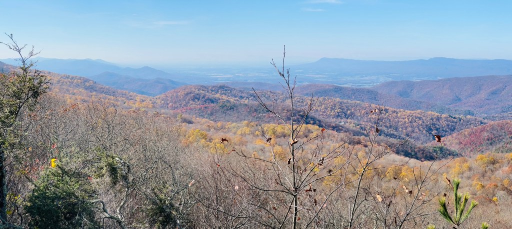 From there we drove to Shenandoah National Park. The drive itself was beautiful, especially the last part, on part of the Skyline Drive, through the trees and looking down numerous autumn coloured valleys.