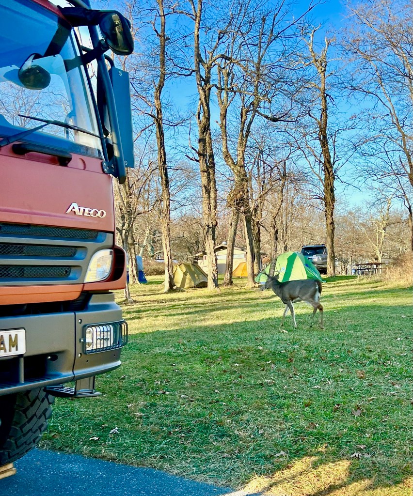 The National Park have several campgrounds in this park and these are great. Good value for money, nice settings and good size pitches. Julie was happy as even the cost of using the laundromat was cheap, so time to get up to date with all the laundry! However what we loved most about this location was the great hiking, so many well marked trails, including the Appalachian trail running right through the site. The Appalachian Trail is 2,200 miles long and runs between Springer Mountain, Georgia and Mount Katahdin, Maine. We walked a few miles of it, but not sure about doing the full trail, as you have to carry tents etc!! One of the other great thing about this site was the white tailed deer, who alarmingly weren’t bothered by human presence and walked around the site nibbling at the bushes.