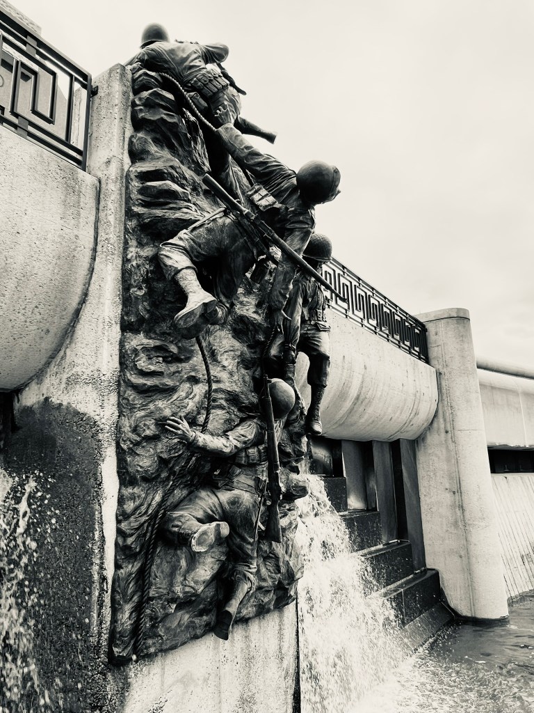 Keeping in the military theme, the next day we visited Bedford, Virginia. A small town, that proportionately suffered the greatest losses of any American town in World War II, inspiring the National D-Day memorial to be placed in Bedford, and was the story behind the film, Saving Private Ryan. When we thought of a memorial, we thought of some structure that we would visit for about 15 minutes. We were there for 2 hours on a guided tour of the whole site, which included giving us a recap of D-Day, from an American perspective. Really interesting, but it was a chilly day, and we were under prepared!