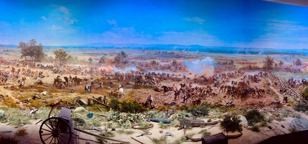 The next day we cycled around the huge site of the Gettysburg battlefields, seeing the many monuments to different regiments, and the location where Lincoln delivered the famous Gettysburg address.