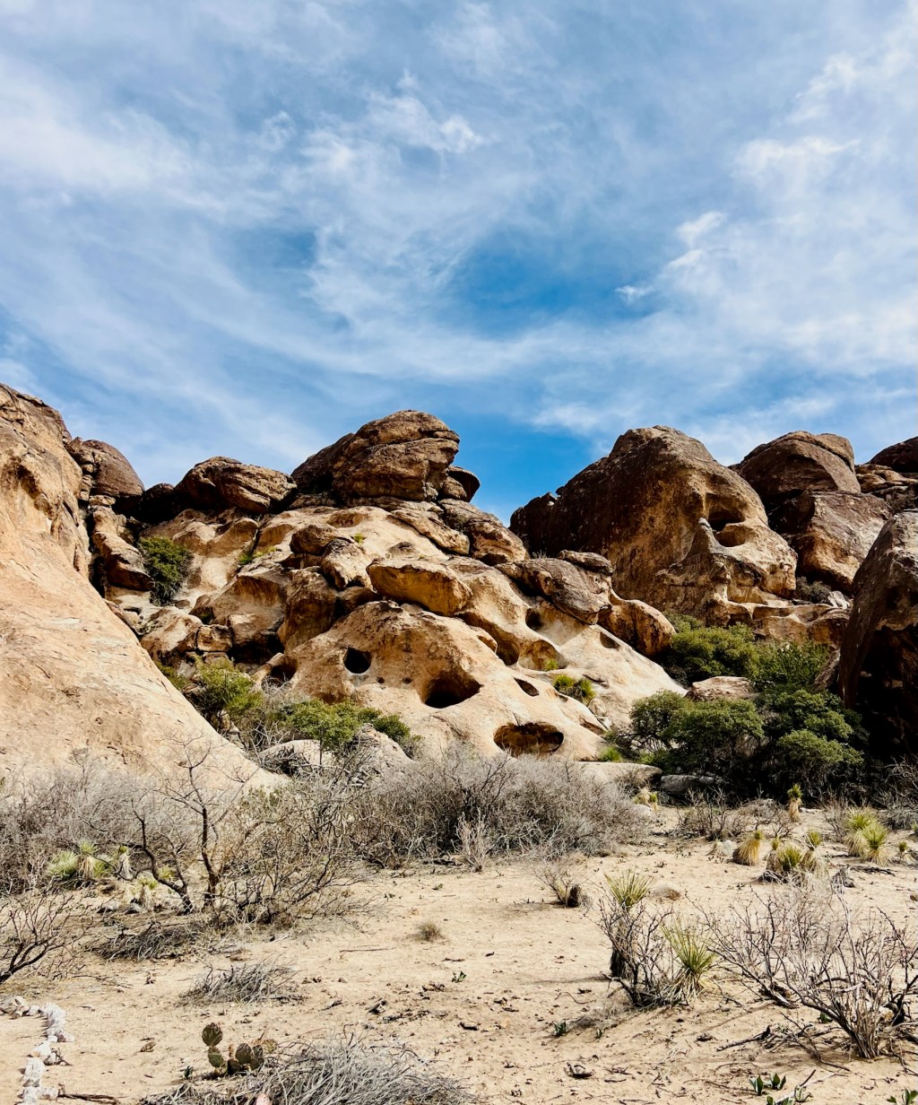 So the next day, Sunday we did a short drive to our last stop in Texas, a state park called Hueco Tanks. We arrived early as we had managed to book on to a ranger led tour, so we could access different parts of the park not allowed on our own. This caused Mark a little stress, as he wanted to watch the Ireland vs Scotland 6 nations rugby game. He was able to listen to the first half as we drove, and kept up to date with the result on his phone; fortunately, Ireland won!