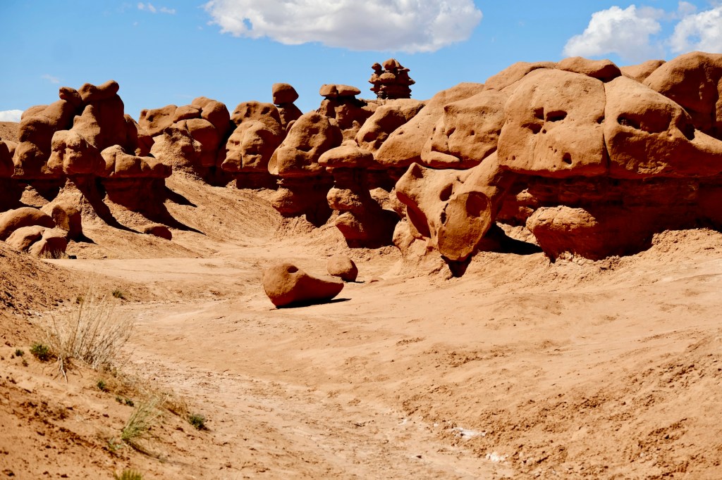 After four memorable nights in Canyonlands, we drove to Goblin Valley State Park, where the landscape is pure fantasy. The area is filled with bizarre, mushroom-shaped rock formations—nicknamed goblins—sculpted by wind and water over millions of years from Entrada sandstone. It’s easy to see why this place has been used in science fiction films; it genuinely feels like another planet. We had fun naming the rock shapes and wandering among them.