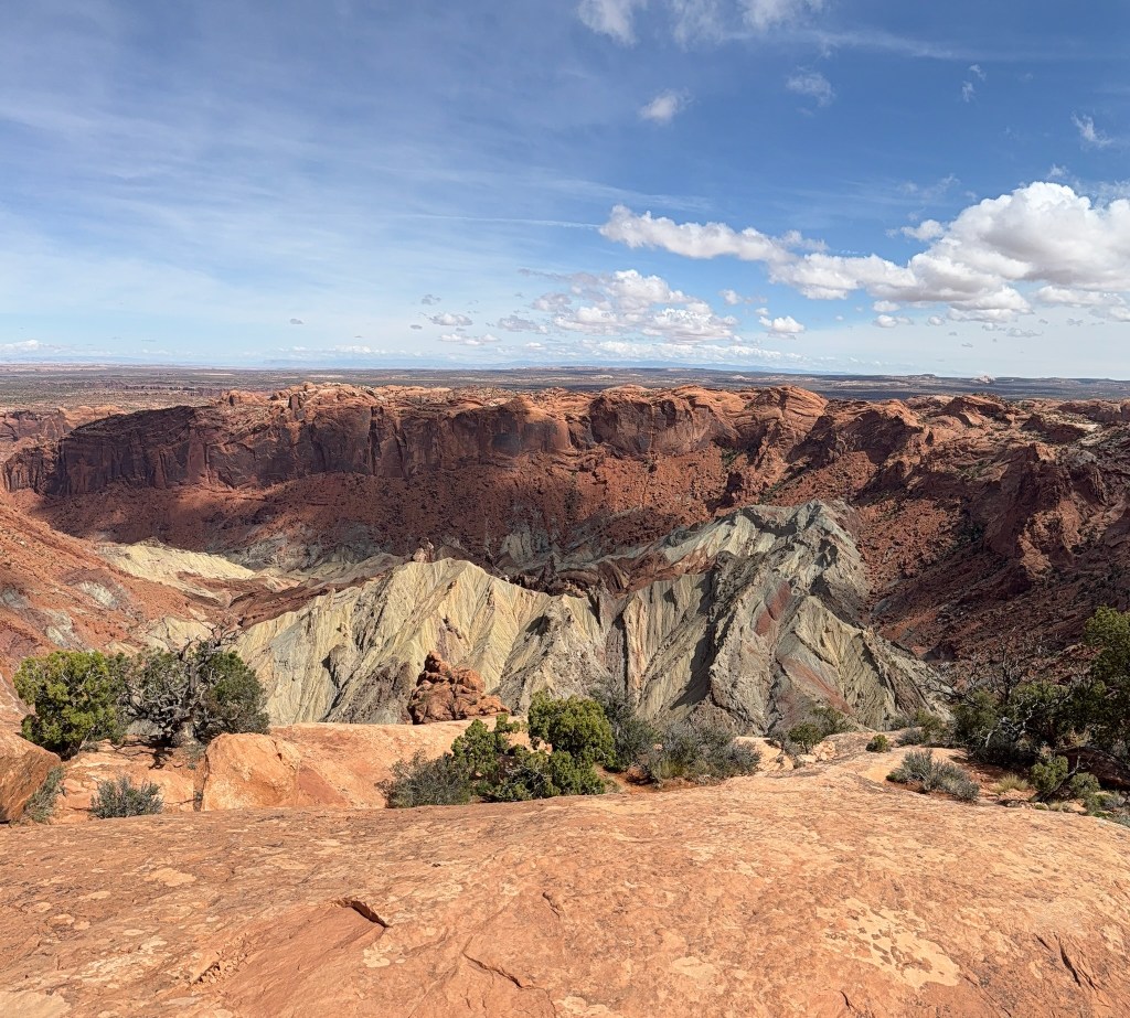 We also cycled the entire scenic drive, soaking in view after stunning view. One of the most intriguing stops was Upheaval Dome, a massive crater-like formation scientists believe was created by a meteorite impact millions of years ago. Its unique geology made for a fascinating walk.