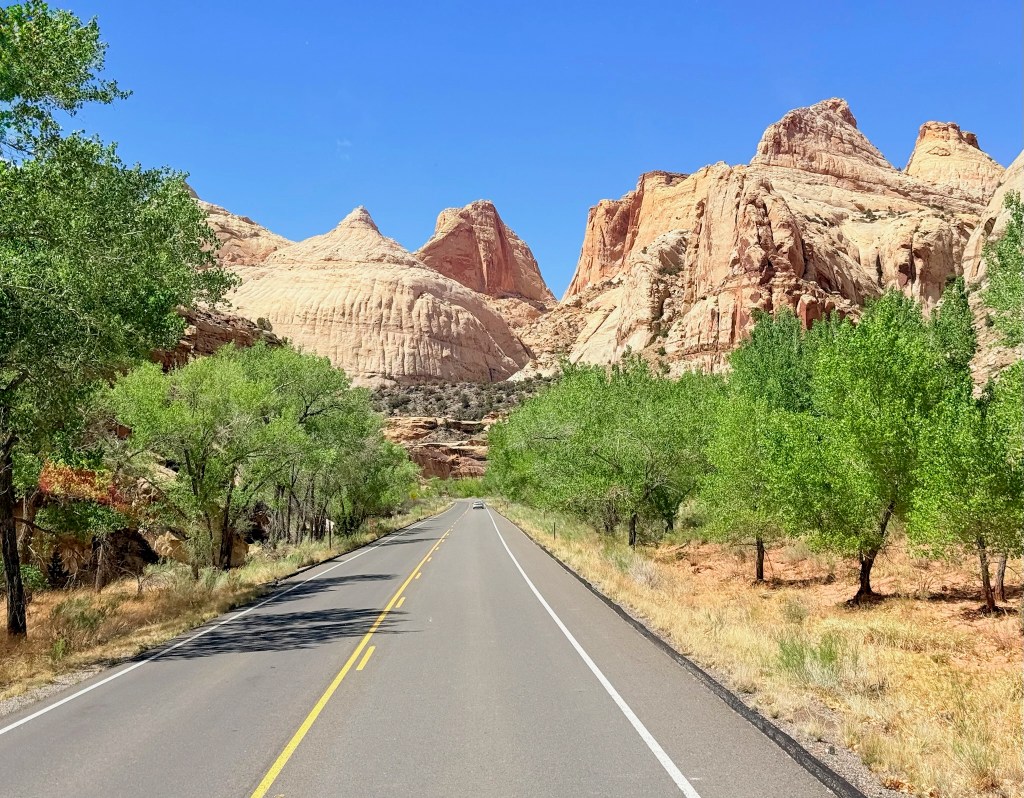 Utah is a big state—so one post just doesn’t do it justice. After our time in Canyonlands, we continued our journey along Scenic Highway 12, which skirts the northern edge of Capitol Reef National Park. Even from the road, we could see how busy it was, but it was lovely to glimpse the park’s famous orchards, adding lush green to the otherwise red rock landscape.