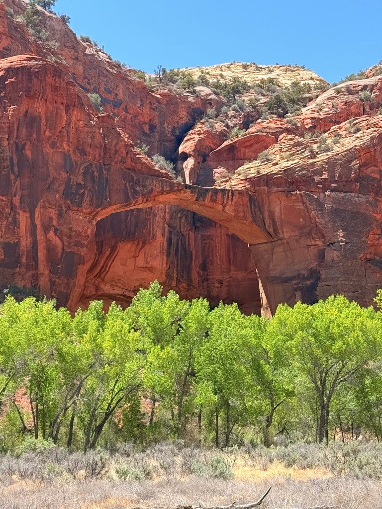 The following day brought another short bike ride and another trail. This time we hiked to a Natural Bridge, crossing the Escalante River several times to get to it. The natural bridge is a lovely sight:-