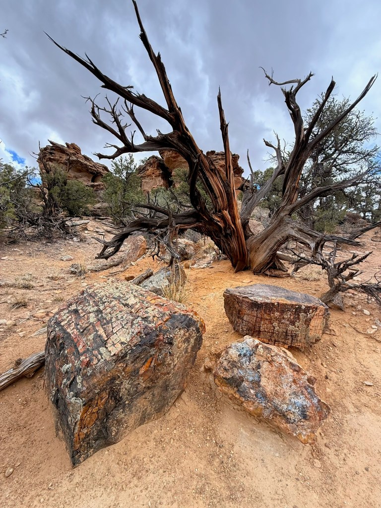 The camping spot was peaceful and scenic, but we had more ground to cover. We drove on to Escalante Petrified Forest State Park, where we stayed the night and did a short loop walk through hills scattered with petrified wood in a kaleidoscope of colors. The fact that this process began 135–155 million years ago is mind-blowing!