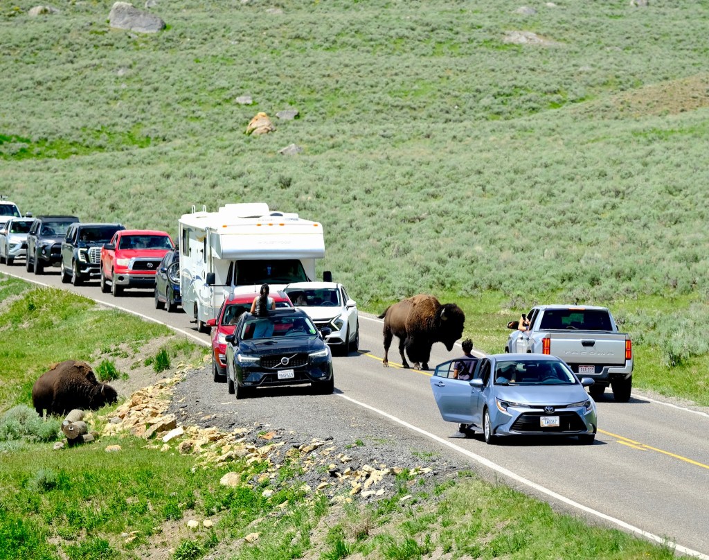 The bison were waiting–by hundreds, no less–strolling the road like they owned the address.