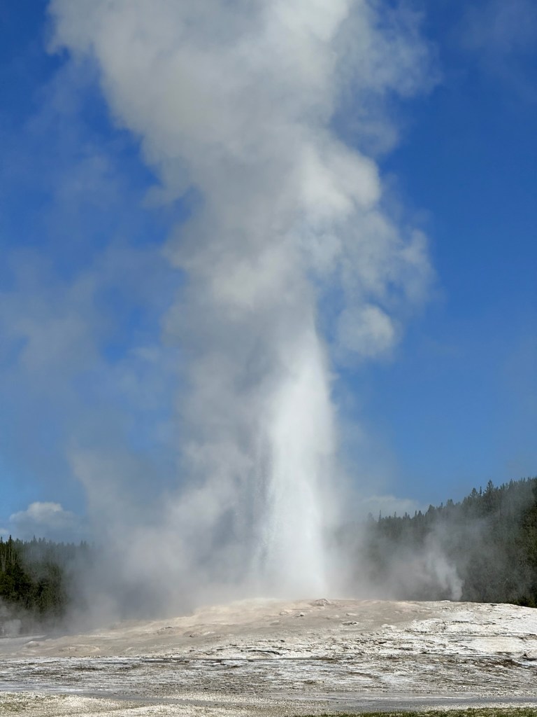 Old Faithful went off, like clockwork, ker-pssshh! The crowd applauded and cheered.