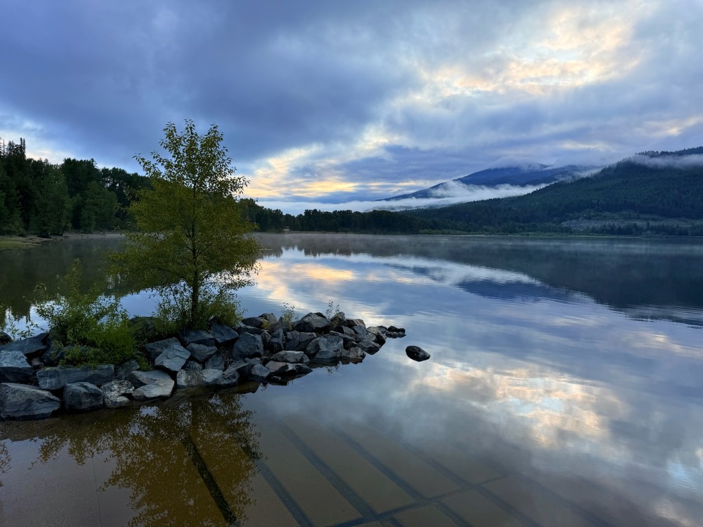 The drive to the ferry was absolutely stunning. We followed the edge of Kootenay Lake – a vast body of water surrounded by tall, majestic mountains. It reminded us of home in some ways, but also of Lake Como or Lake Garda in Italy. The ferry across Kootenay Lake takes about 45 minutes and is apparently the longest free ferry in the world. The crossing was serene, with hills, forests, and calm water all around.