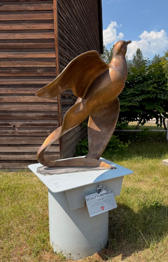 After camping at Moyie Provincial Park for a night, we continued toward Castlegar. Along the way, we saw a juvenile black bear on the roadside – there was nowhere to stop safely, so we had to keep going. On the way, we passed through the town of Creston, which has lovely fruit stands selling local produce. We bought some delicious fresh produce, including something new to us – garlic scapes, which reminded me of wild garlic, which we get back in the UK. The cherries from the orchards around Creston weren’t quite ripe, but I bought some shipped in from Osoyoos; just seeing the orchards made us happy. We’ve missed this kind of landscape. It’s wonderful to see so much green again, trees full of fruit, and signs of summer growth.