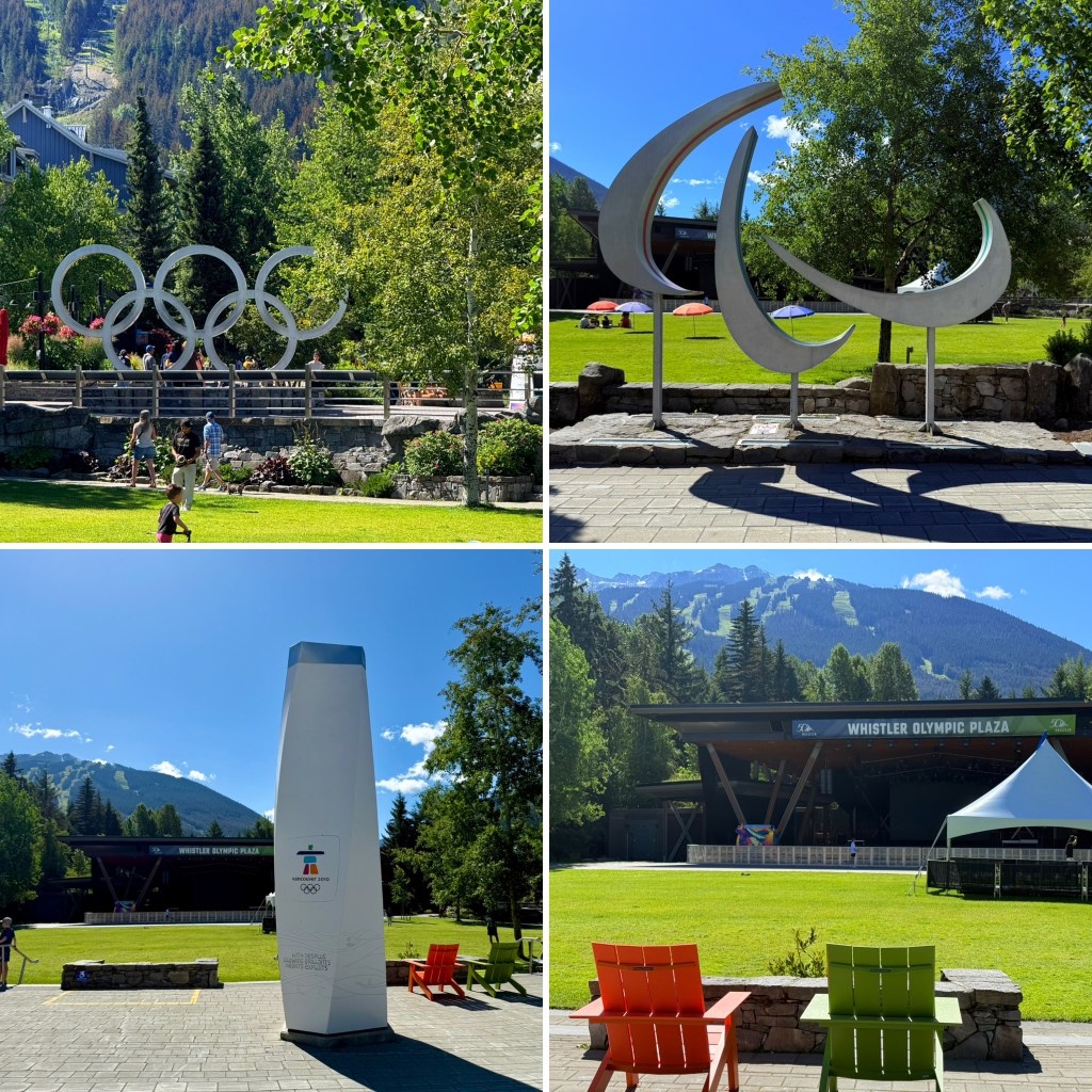 The heat in that section was intense, only to be replaced by Alpine coolness as we wound our way back into forests and turquoise lakes. Cycling seems to be the national pastime around here. Everywhere we go, there are cyclists — and plenty of dedicated cycle lanes (or at least generous hard shoulders that work as cycle lanes). We’ve also noticed a lot of BMW Mini cars on the roads. Clearly, this is a place where people love the outdoors… and perhaps compact parking. The Sea to Sky road ends at Whistler, which we found highly polished and very manufactured. Of course, this is likely to be as a consequence of the Winter Olympics, in 2010.