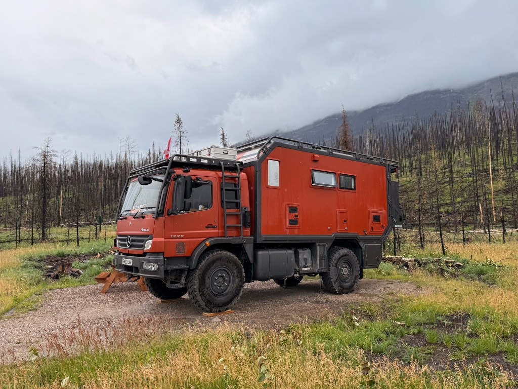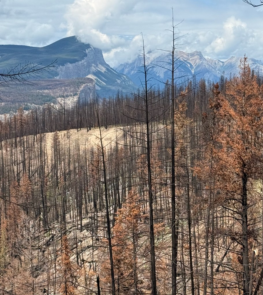 Jasper itself was surreal — temporary housing alongside homes untouched by the fire, with burned-out lots just across the street. The campground we stayed in had not long reopened after the fire and you could see that it would once have been a forested site, now just burnt stumps remained.