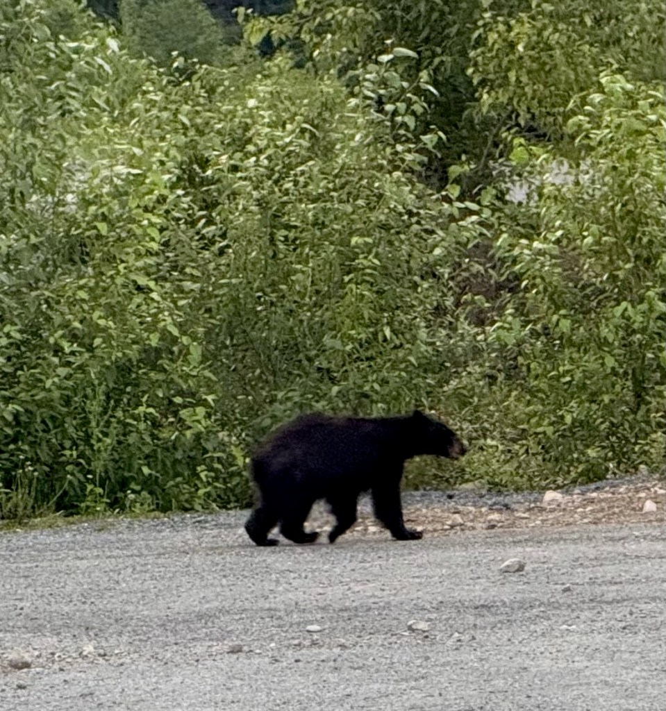 Again lots of cyclists, mainly mountain bikers; it looks like there is some serious down hilling here, not exactly our style, old bones don’t heal very quickly! We did find somewhere nice and quiet to boon dock, just outside Whistler, and here we were treated to the sight of 3 bears, sauntering through the large car park!