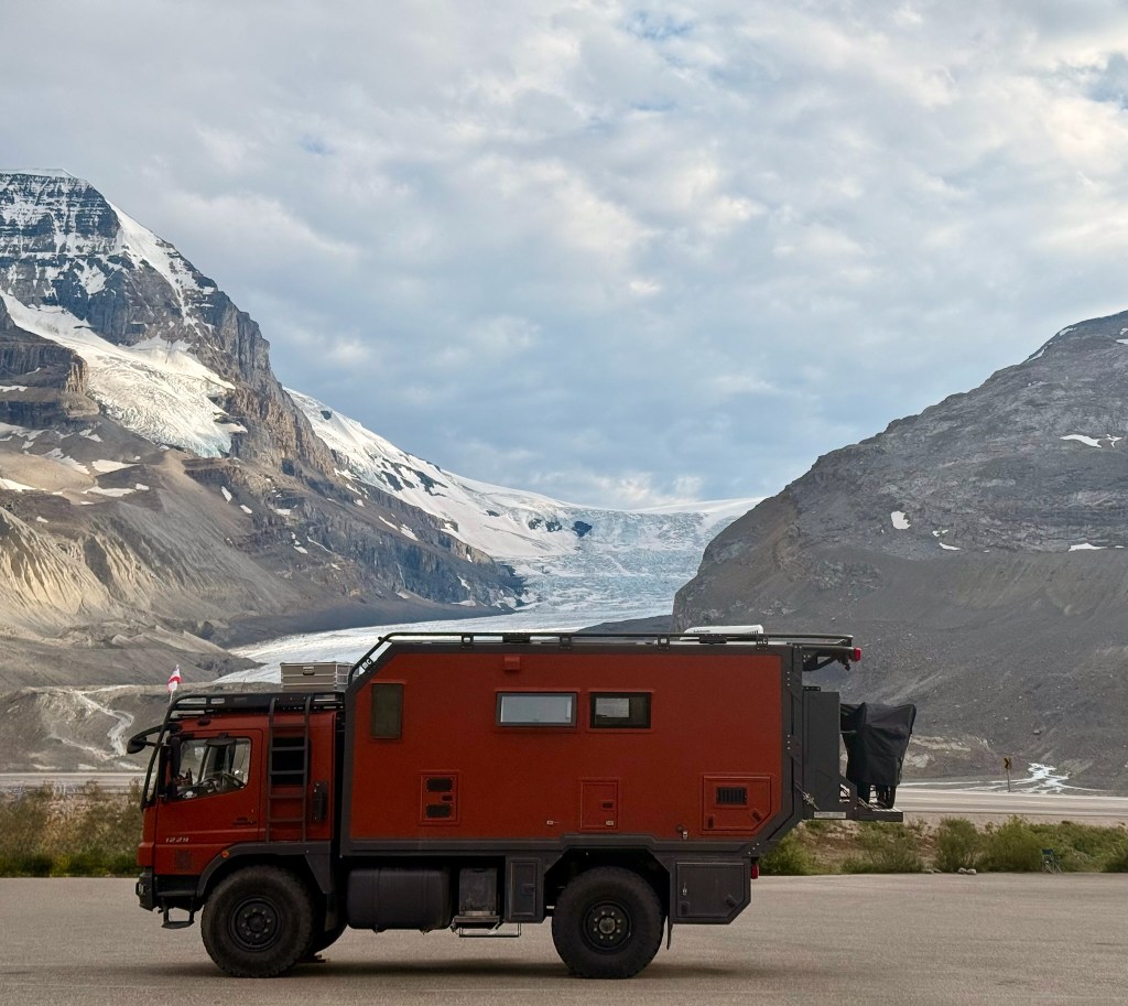 With binoculars we were able to watch giant all-terrain buses take tourists onto the icefield; this is probably the main reason this car park and visitor centre is so busy. After most of the vehicles went, we had a peaceful evening in this parking lot.