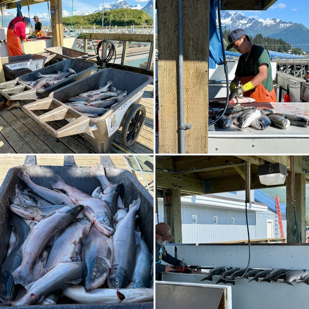 Valdez is a small port town. It had to move to its current position following the 1964 earthquake and subsequent tsunami that all but destroyed the old town. We enjoyed walking through the town, looking at all the fishing boats, both commercial and sport fishing and watching the fishermen come back in with their catches and professional fish preparers working. There is a business close to the harbor that specialises in preparing the fish and freezing it for transportation.