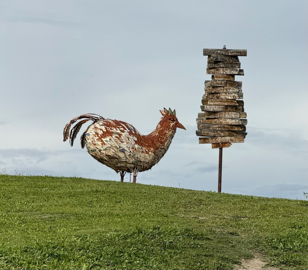 Driving the rough road into Chicken, Alaska, was bouncy! When we arrived it felt like stepping back in time. It’s a quirky little place, straight out of a prospector’s storybook. We even met a character we nicknamed Stinky Pete, a gold prospector chewing tobacco. Mark even gave it a try — let’s just say once was enough!