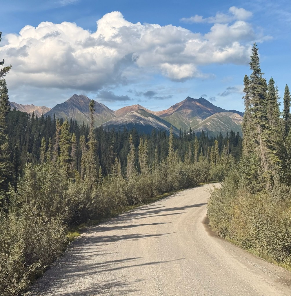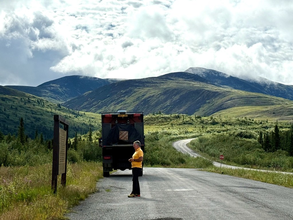 The drive itself was long and slow, miles and miles of trees and valleys unfolding with every bump and rattle. Thankfully, our Milepost Guidebook proved to be an invaluable resource in the cab — not just for pointing out places of interest but also for preparing us for road conditions.